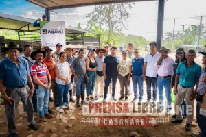 El alcalde de Aguazul, Nelson Camacho Caicedo, continuó la entrega del proyecto que beneficia a pequeños y medianos ganaderos; en esta oportunidad 21 familias recibieron los semovientes, que les permitirá un repoblamiento, mejoramiento genético y un activo económico para sus hogares.