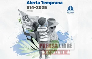La Defensoría del Pueblo emitió la Alerta Temprana (AT) 014 de 2025 para Arauca, en razón a la confrontación armada entre grupos armados ilegales que delinquen en ese departamento del oriente de Colombia.