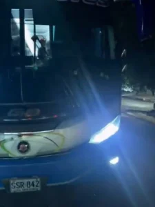 vehículo de Libertadores que cubría la ruta Bogotá – Arauca, fue interceptado en el sector de la Y de Betoyes por individuos armados que le dispararon desde una motocicleta, generando daños en el panorámico frontal, afortunadamente sin impactar a los pasajeros y el conductor.