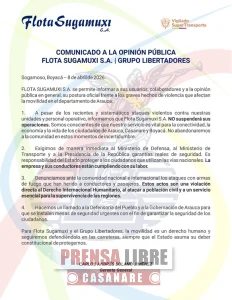 Comunicado de Flota Sugamuxi S.A. y Grupo Libertadores