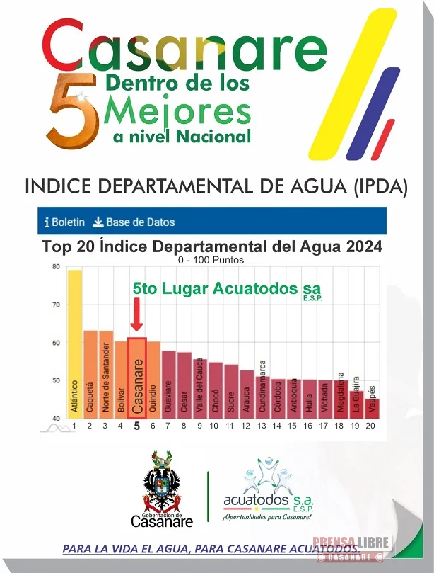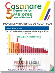 El funcionario destacó que Casanare pasó del puesto 16 al quinto lugar, superando departamentos como Meta, Cundinamarca y Valle del Cauca. “Es un logro de todos los casanareños y un resultado del compromiso del gobernador César Ortiz Zorro, quien ha liderado las gestiones en Bogotá para traer soluciones en saneamiento básico y agua potable”, afirmó Cuevas.