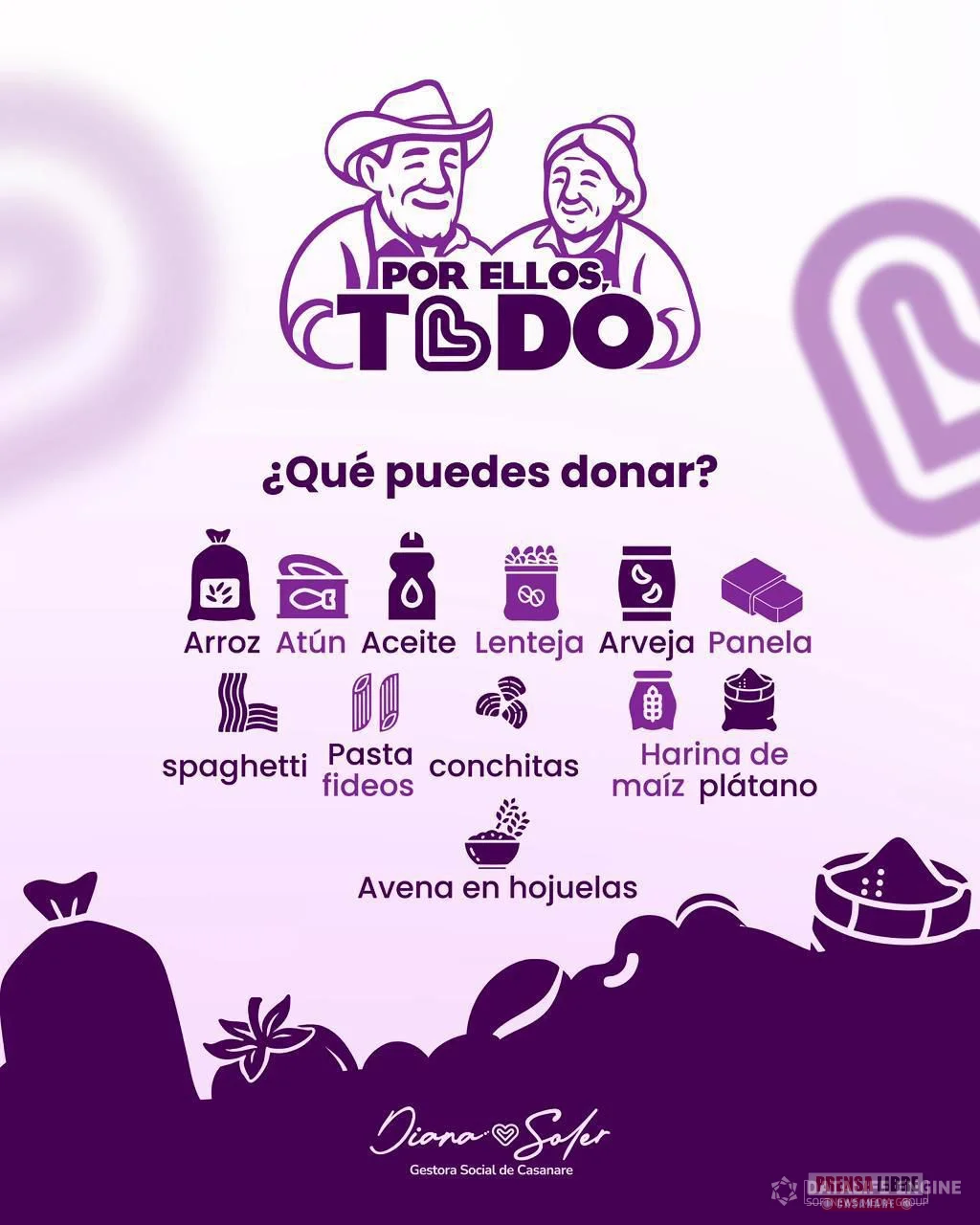 Este viernes 17 de octubre, desde las 10:00 de la mañana hasta las 5:00 de la tarde, se realizará en Yopal la Gran Donatón ‘Por Ellos Todo’, una jornada de solidaridad liderada por la gestora social del departamento, Diana Soler, que busca recolectar alimentos no perecederos destinados a más de 16.900 adultos mayores en situación de vulnerabilidad de los 19 municipios de Casanare.