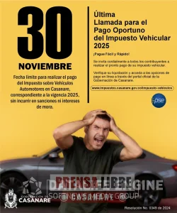El trámite puede realizarse de manera rápida y segura en el portal oficial de la Gobernación https://impuestos.casanare.gov.co/impuesto-vehiculos , donde los contribuyentes pueden consultar la liquidación y efectuar el pago en línea.