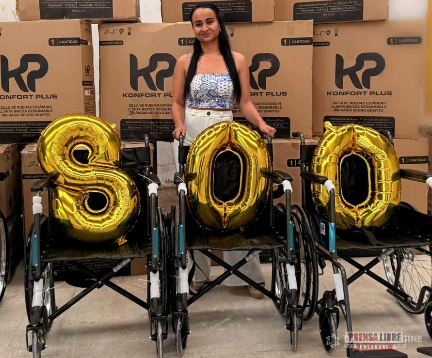 La gestora Social de Casanare, Diana Soler, completó más de 800 ayudas técnicas recolectadas en lo que va del año, un trabajo que ha llegado a adultos mayores y personas con discapacidad en los 19 municipios del departamento. La más reciente jornada incluyó la recepción de 181 sillas de ruedas donadas por el Banco AV Villas.