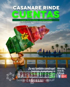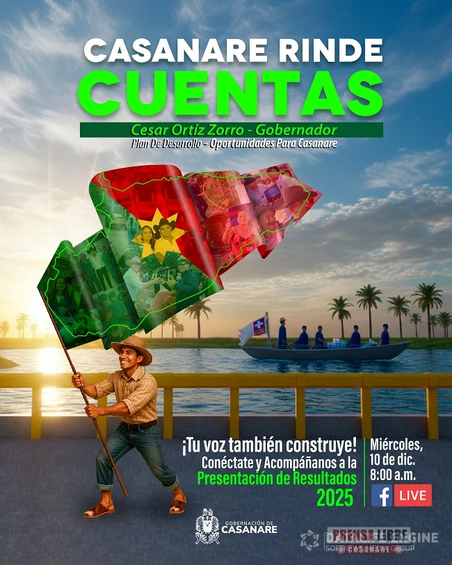Este miércoles 10 de diciembre, a partir de las 8:00 a.m., el gobernador César Ortiz Zorro, acompañado de su equipo de Gobierno, lleva a cabo la audiencia pública de Rendición de Cuentas Vigencia 2025 del Plan de Desarrollo "Oportunidades para Casanare".