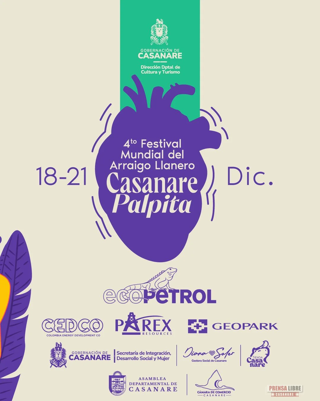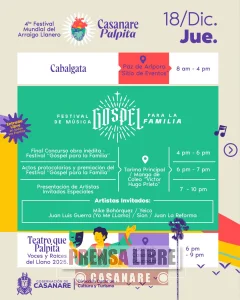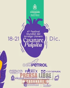 Del 18 al 21 de diciembre se realiza la cuarta versión del Festival Mundial del Arraigo Llanero “Casanare Palpita 2025”, evento que contará con una amplia agenda cultural, artística y tradicional.