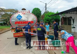 Por instrucción del gobernador César Ortiz Zorro, la Dirección Departamental de Gestión del Riesgo desplazó carrotanques que permitieron mitigar el impacto de la suspensión del servicio mientras se adelantaban las reparaciones. La entrega de agua se realizó en el municipio con el apoyo de los Bomberos Voluntarios, el Ejército Nacional y la Policía Nacional, en una labor articulada que permitió abastecer de manera continua a las familias durante la contingencia.