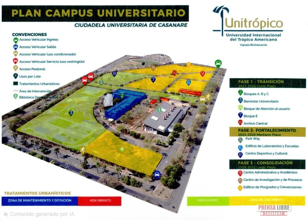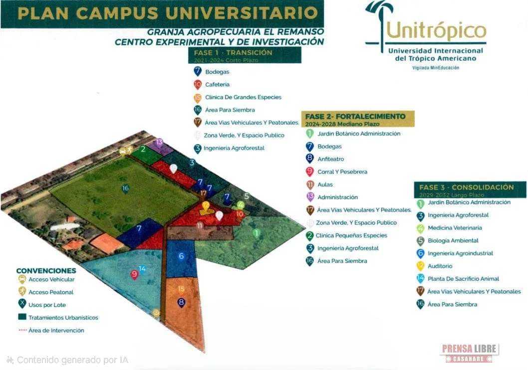 El directivo señaló que las obras hacen parte del “Plan Campus”, estrategia que se viene implementando desde 2021 tras la transformación de Unitrópico de institución universitaria a universidad pública. Entre los proyectos en ejecución se encuentran la construcción de redes hidráulicas, sanitarias y eléctricas en la ciudadela y en la granja El Remanso, así como el archivo central, los laboratorios de ingeniería y clínicas veterinarias para grandes y pequeñas especies. Estas inversiones buscan fortalecer la infraestructura y ampliar la cobertura