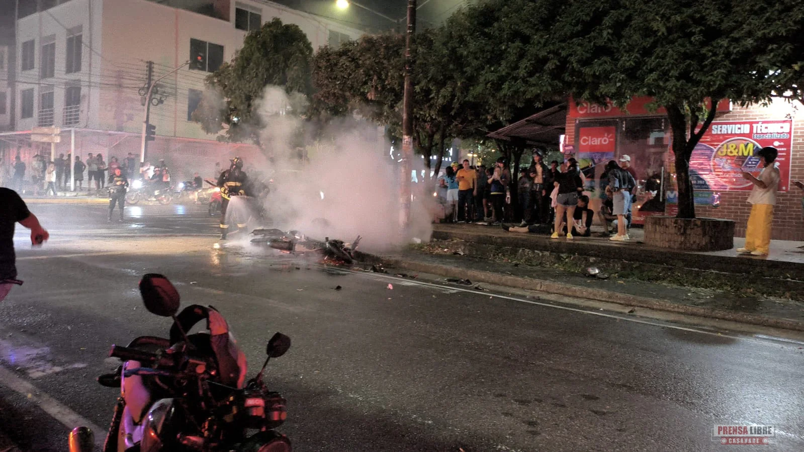 Tras el violento choque de las motocicletas, los vehículos se incendiaron, colocando en riesgo de quemarse a los involucrados en el accidente, pero gracias a la oportuna intervención ciudadana, fueron retirados del peligro.