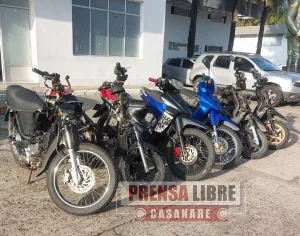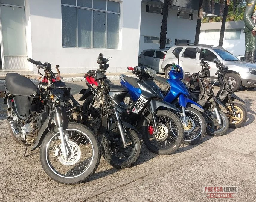 En el marco de la ofensiva contra el multicrimen, la Policía Nacional reportó la recuperación de ocho motocicletas avaluadas en 58 millones de pesos en diferentes municipios del departamento de Casanare. Los vehículos fueron hallados gracias a operativos de control y verificación de antecedentes en Yopal, Aguazul, Pore y Chámeza.