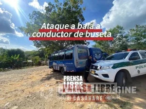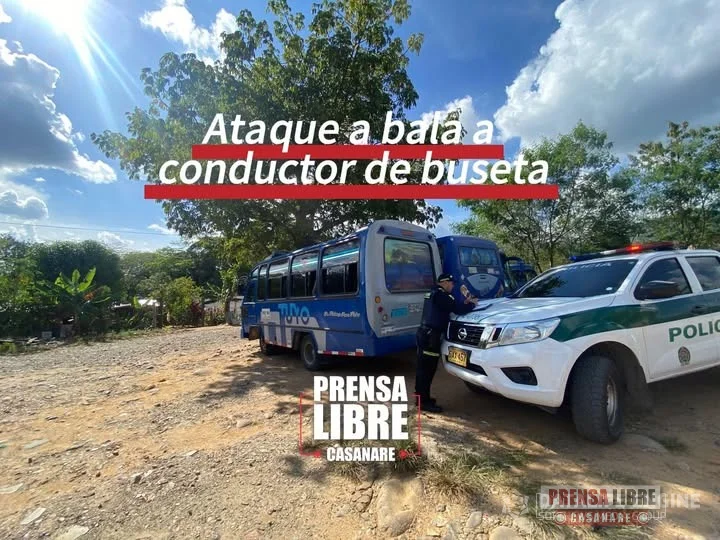 Hombres armados dispararon en tres oportunidades contra una buseta de servicio público en el barrio 7 de Agosto de Yopal, exactamente en el paradero de la ruta 9. El ataque, ocurrido alrededor de la 1:50 p.m. de este miércoles 5 de noviembre, dejó daños materiales en el vehículo y lesiones al conductor, quien recibió un impacto de bala en una pierna. La víctima fue trasladada a un centro asistencial y se encuentra fuera de peligro.