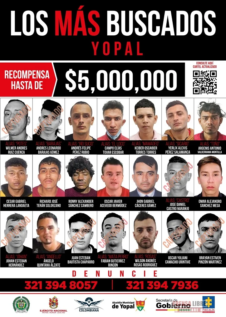 El funcionario explicó que el cartel de los más buscados se actualiza de manera oficial y en tiempo real únicamente en la página institucional de la Alcaldía de Yopal, por lo que cualquier otra versión publicada por otras entidades no debe ser considerada como oficial.