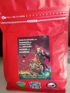 El empaque tenía un código de barras dónde a través del celular se podía acceder a una plataforma del Frente y un sello de la marca del "Café Eleno".