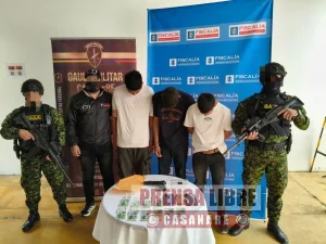 El Gaula Militar en Casanare reportó la captura de tres jóvenes entre 19 y 20 años y la aprehensión de un menor de edad en el municipio de Yopal, quienes presuntamente integraban una banda dedicada a la extorsión en esta ciudad y en Aguazul. Los detenidos se hacían pasar como integrantes del Frente 28 para intimidar a comerciantes, informó el Mayor Jorge Tapias, Comandante del Gaula del Ejército en el Departamento