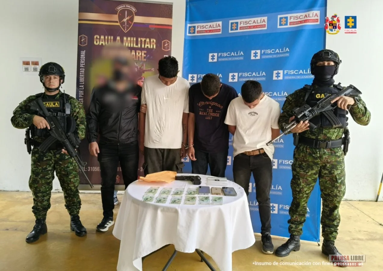 Según la Fiscalía, por estos mismos hechos fue judicializado un adolescente de 17 años, a quien le fue impuesta medida de internamiento preventivo en centro especializado Servidores del Cuerpo Técnico de Investigación (CTI), con apoyo del Ejército Nacional, capturaron en flagrancia a estos hombres y aprehendieron al menor de edad.