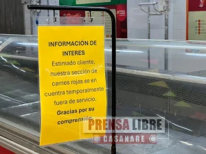 Durante el transcurso de la jornada, los clientes que acudieron al supermercado se encontraron con vitrinas vacías y avisos que señalaban: “Estimado cliente, nuestra sección de carnes rojas se encuentra temporalmente fuera de servicio. Gracias por su comprensión”, pero no daban cuenta de la restricción impuesta por la autoridad competente.
