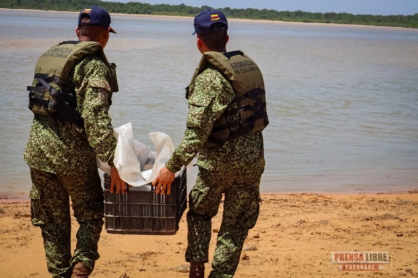 En desarrollo de operaciones de registro y control fluvial en el río Orinoco, unidades de la Armada de Colombia hallaron en la ribera de esta arteria fluvial, cuatro cajas con 826 ejemplares de peces, entre alevines y adultos, en el sector de Bojonawi, jurisdicción de Puerto Carreño, departamento del Vichada.