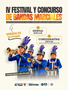 Este sábado 25 de octubre se realiza la cuarta versión del Festival Nacional de Bandas Marciales, que organiza la institución educativa Policarpa Salavarrieta de Morichal.
