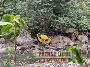 El vehículo de placas UVM 625 se salió de la carretera en una zona de curva pronunciada y descendió violentamente quedando a pocos metros del lecho del río Cravo Sur, dejando un rastro de derrape que evidenciaría un intento del conductor por evitar el accidente.
